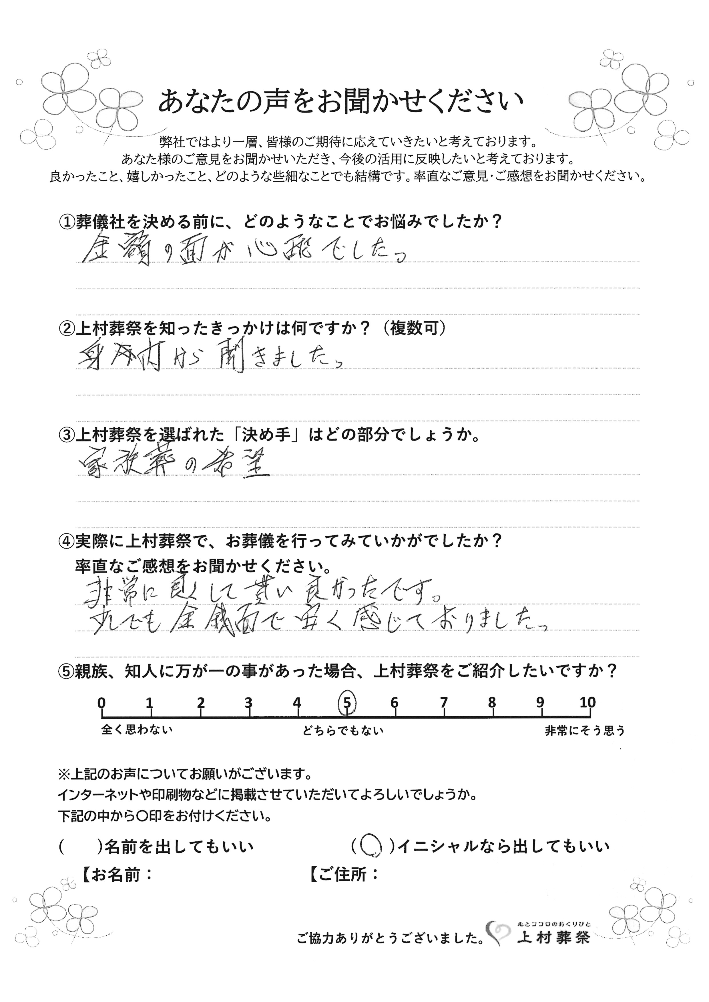 家族葬の希望